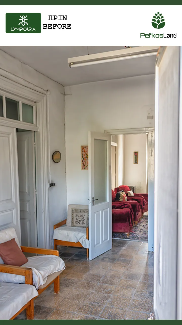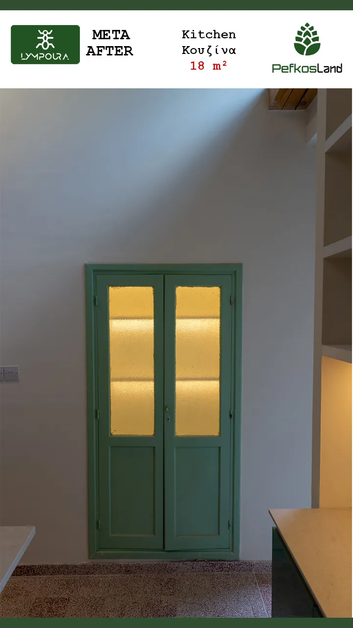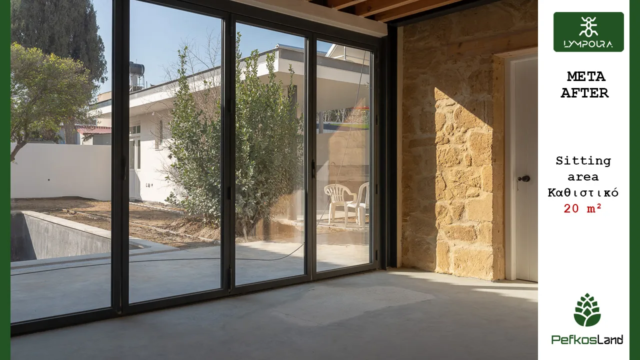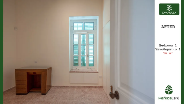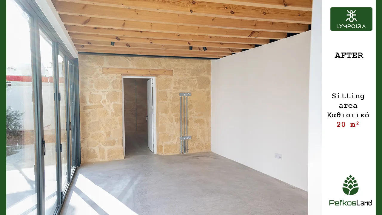 Embedded in the historical core of Engomi, this newly restored and preserved traditional house is dated around 1920 and is a ground floor building with a tripartite partition and the addition of an all-stone masonry building, the ‘Cooking room’, on one side of the main part of the building.