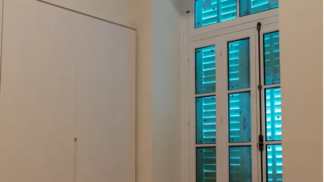 The solarium is a passage from the entrance to the inner courtyard where it connects to a single C-shaped open-air covered area.