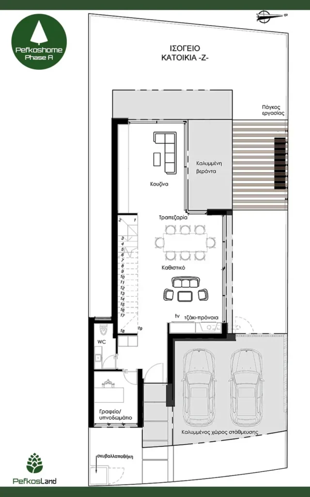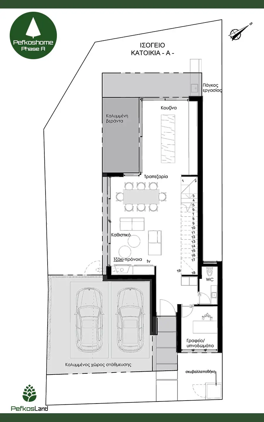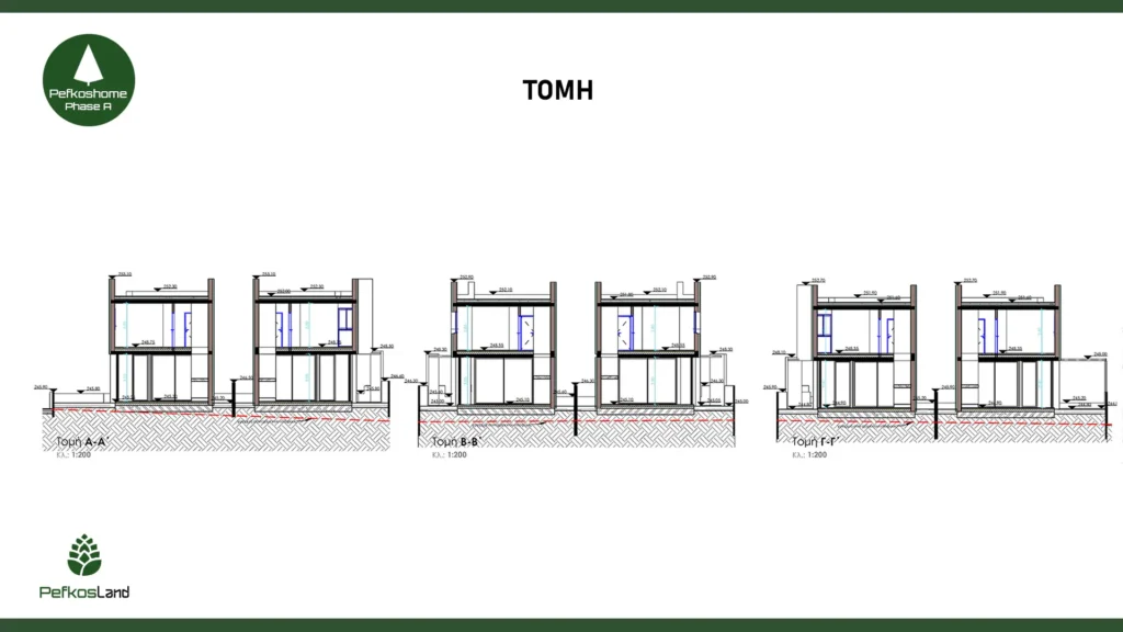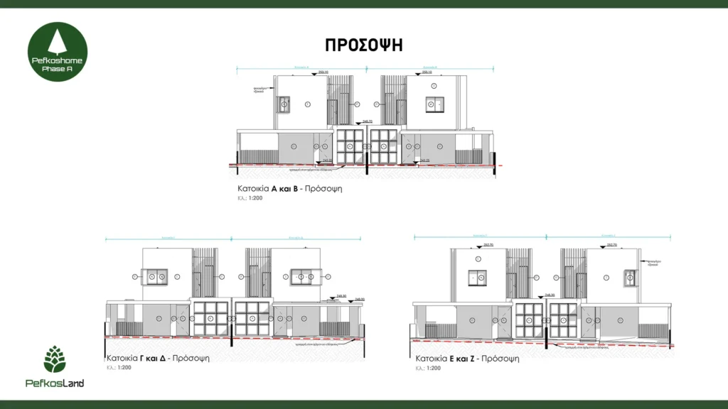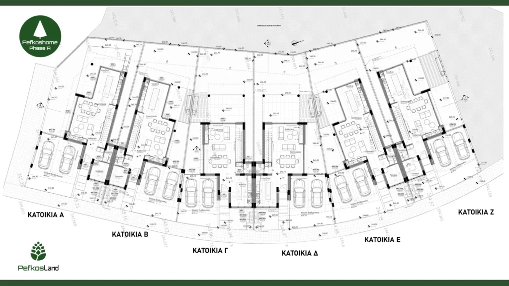 Phase A of the project consists a total of 6 semi-detached houses, 4 4-bedroom and 2 3-bedroom, situated in a very quiet residential neighbourhood at the Pefkos area of Lakatamia, only 5 minutes’ drive from the Lidl and Alpha Mega supermarkets, the elementary school and other amenities. The properties are to be built on 250 to 270 m2 plots.